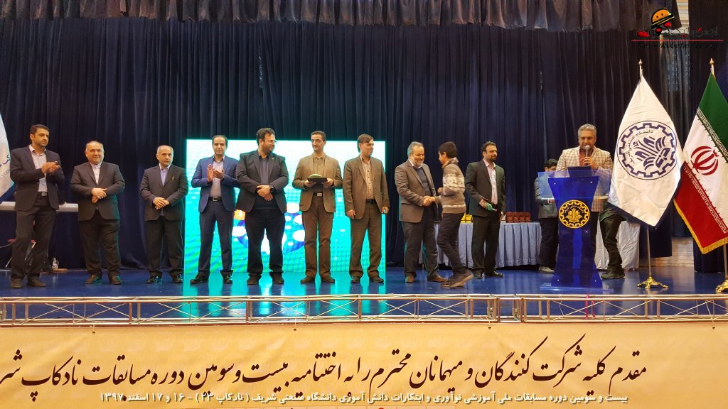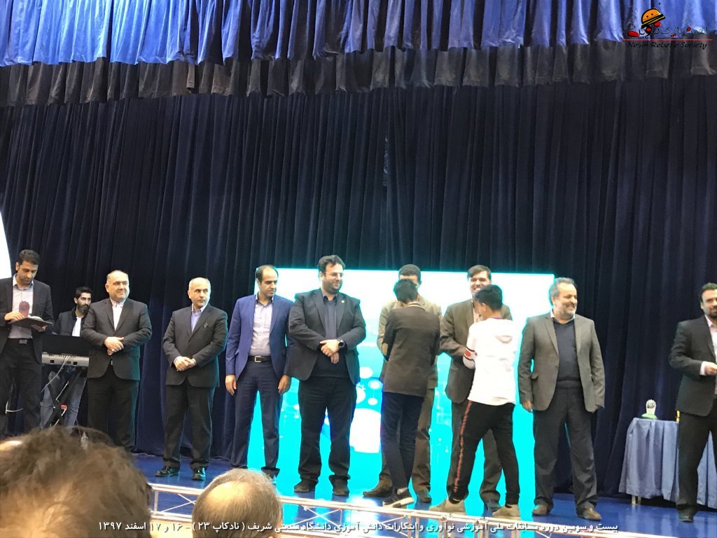 سخنران روز اختتامیه دکتر وثوقی وحدت دبیر شورای سیاستگذاری نادکاپ شریف و دکتر کریمی رئیس حوزه آینده پژوهی آوا و جانشین سپند بودند که به همراه دکتر فیض و دکتر گلشن از بنیاد ملی نخبگان، امیر داداشی از حوزه آینده پژوهی ارتش، مهندس رجبی معاون مپنا، مهندس هموله مدیرکل کانون پرورش فکری، دکتر بیات هیات علمی دانشگاه صنعتی شریف و مهندس اسماعیلی و مهندس امیری از شرکت نادکو از برترین های بیست و سومین دوره مسابقات و جشنواره ملی آموزشی نوآوری و ابتکارات دانش آموزی دانشگاه صنعتی شریف (نادکاپ شریف) تقدیر کردند
